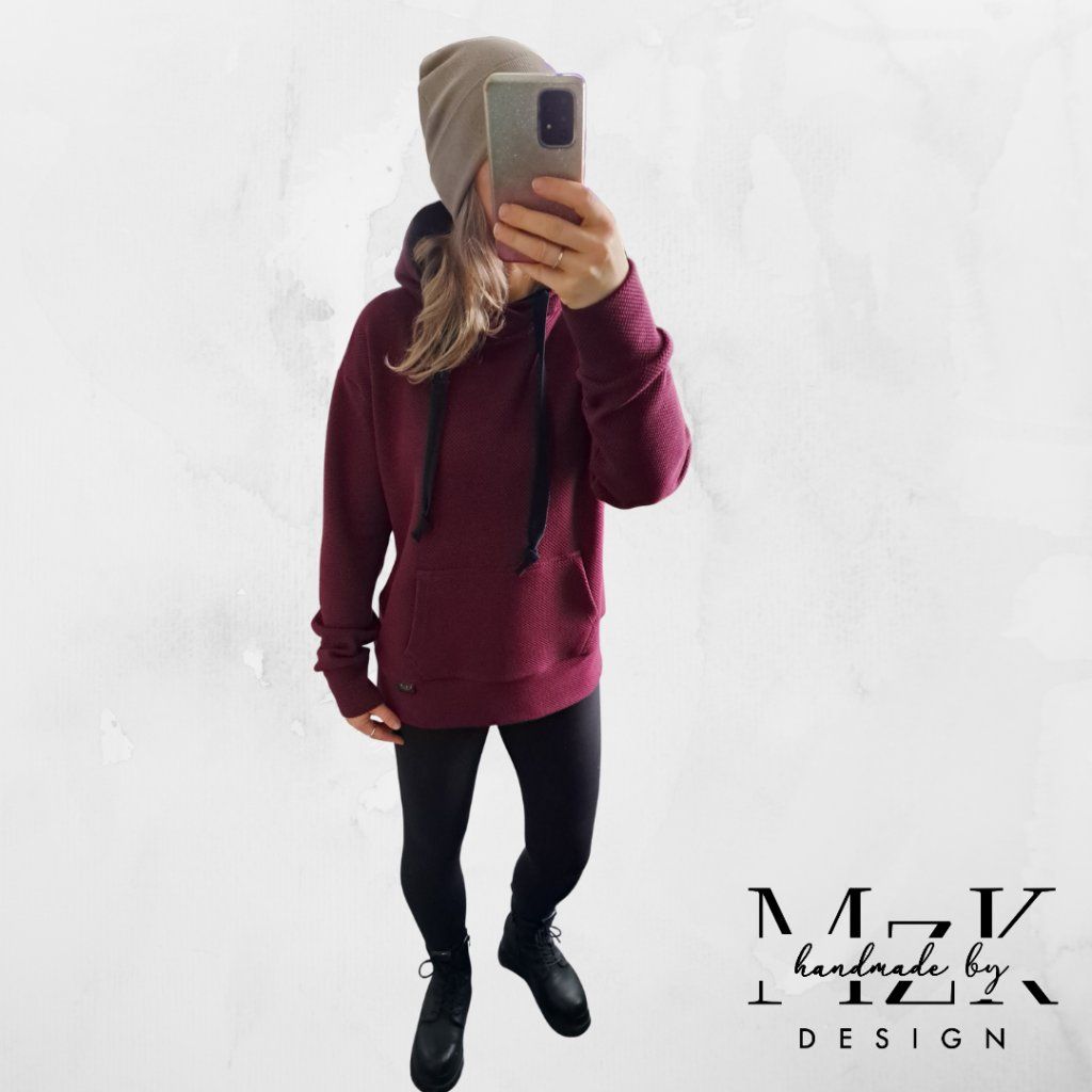JEDNOBAREVNÁ VOLNOČASOVÁ MIKINA S 3D EFEKTEM VE VÍNOVÉ BARVĚ.