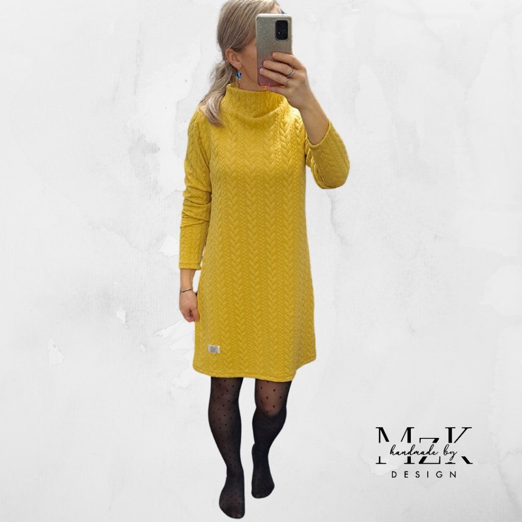 Šaty z pleteniny s přinechaným roláčkem.