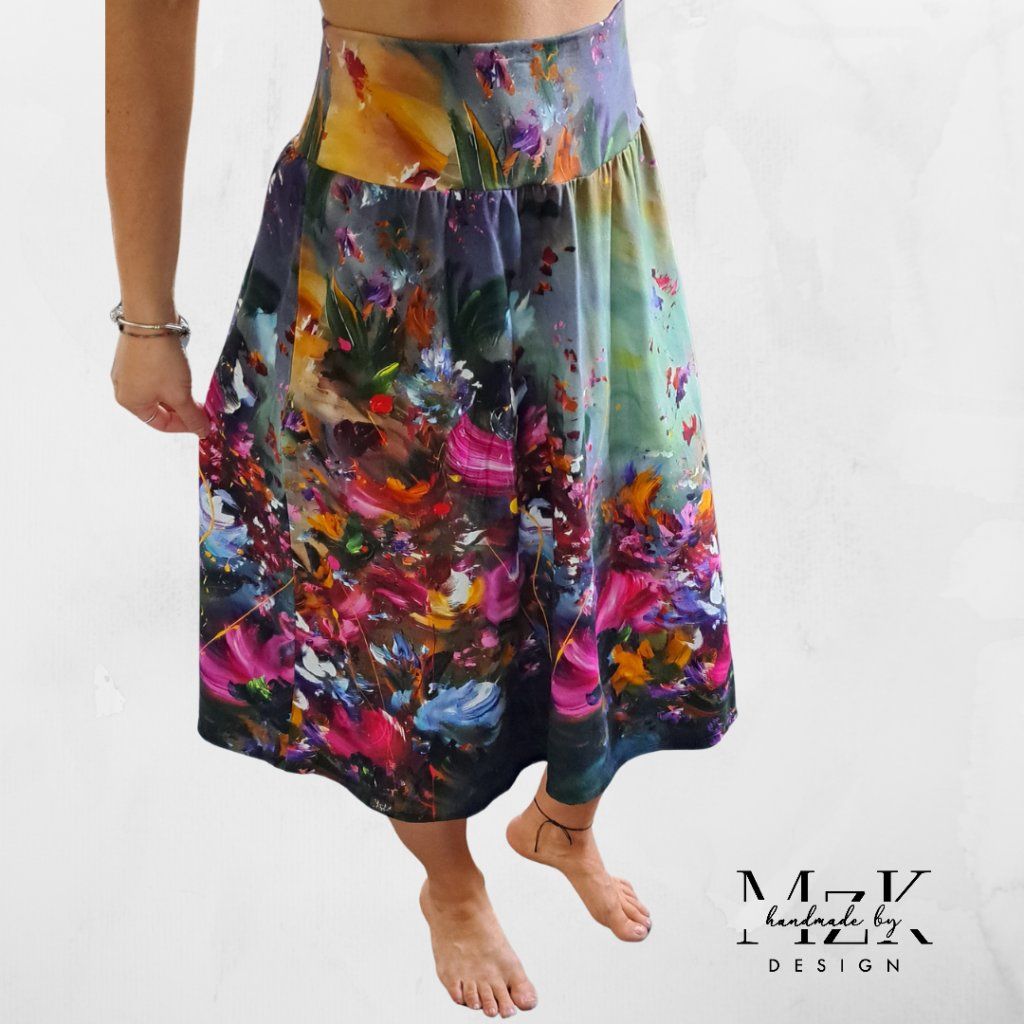 „Aby Vám kousek seděl jako ulitý, vložte do košíku svoji velikost a do poznámky v posledním kroku objednávky uveďte své míry (obvod pasu a boků). Obvod pasu: Měřte v místě, kde budete sukni nosit (úpletový pas je pružný a pohodlný).